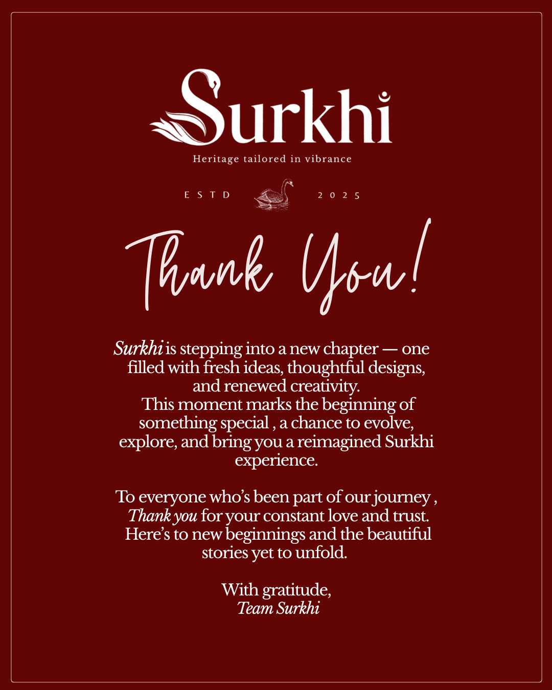 Surkhi is more than a brand — it’s a student-led movement. A young team with fresh ideas, redefining ethnic wear for today’s generation while staying true to authenticity
